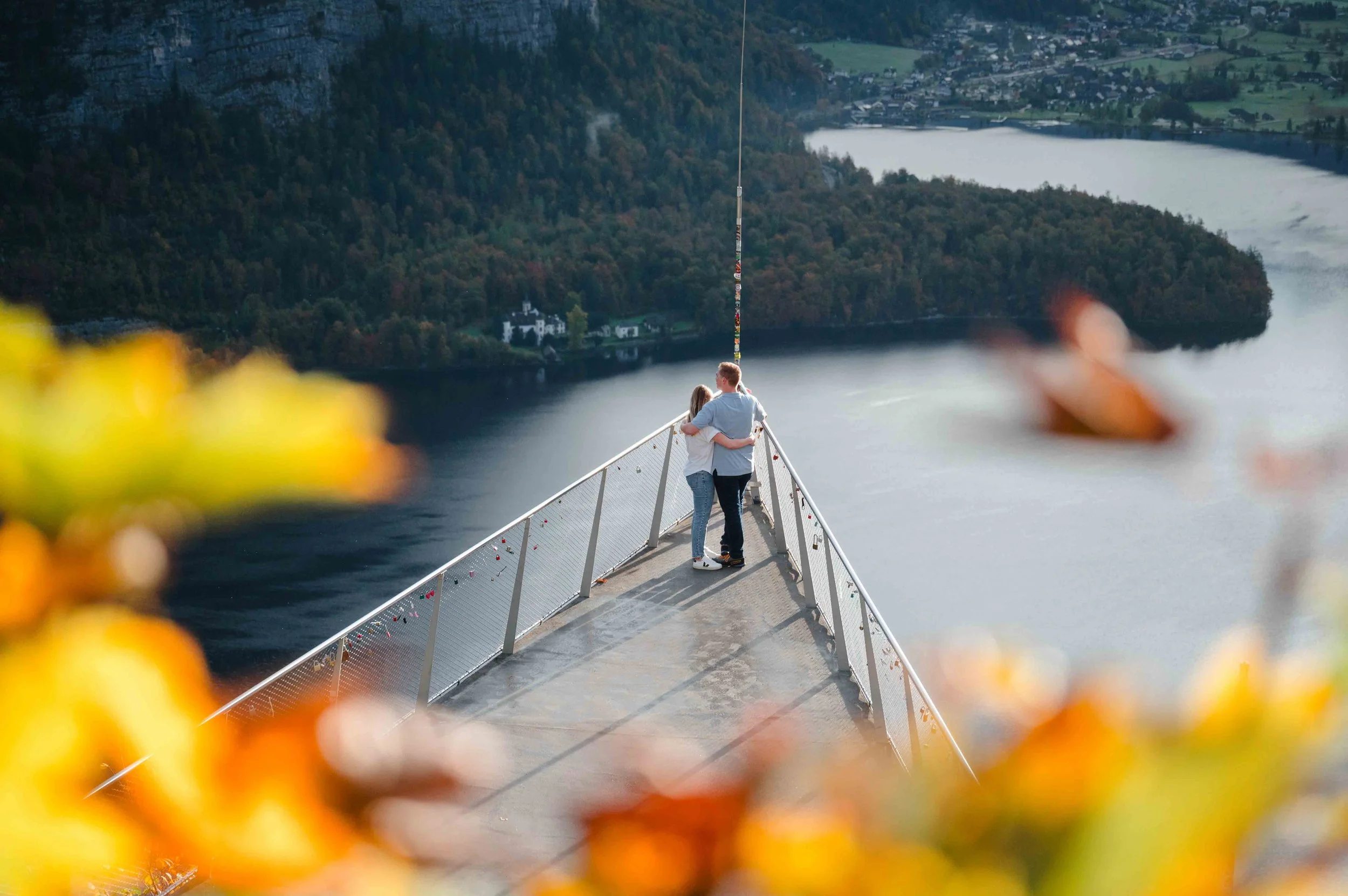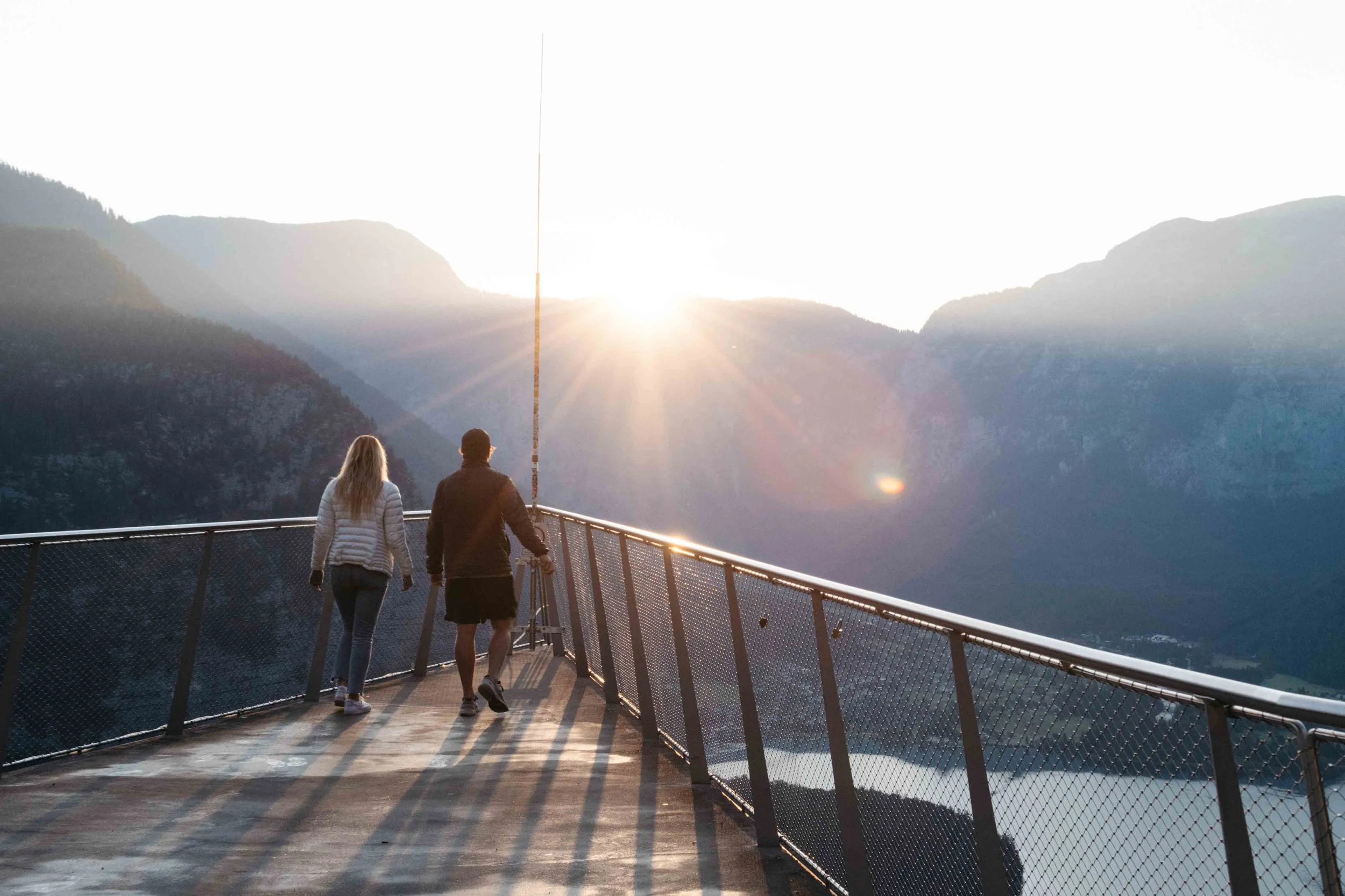Immerse yourself in the breathtaking panorama from the Hallstatt Skywalk platform as the sun gracefully ascends above the Salzkammergut valley. Enhance this memorable experience by having a local photographer accompany you on this tour, ensuring not only an insightful exploration of Hallstatt's rich heritage but also the creation of professional photographs that will encapsulate this unique and unforgettable moment.
